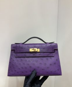 エルメス ケリー mini 22CM 手作り オーストリッチ写真色/金具ゴールド 2023AMkelly-0024