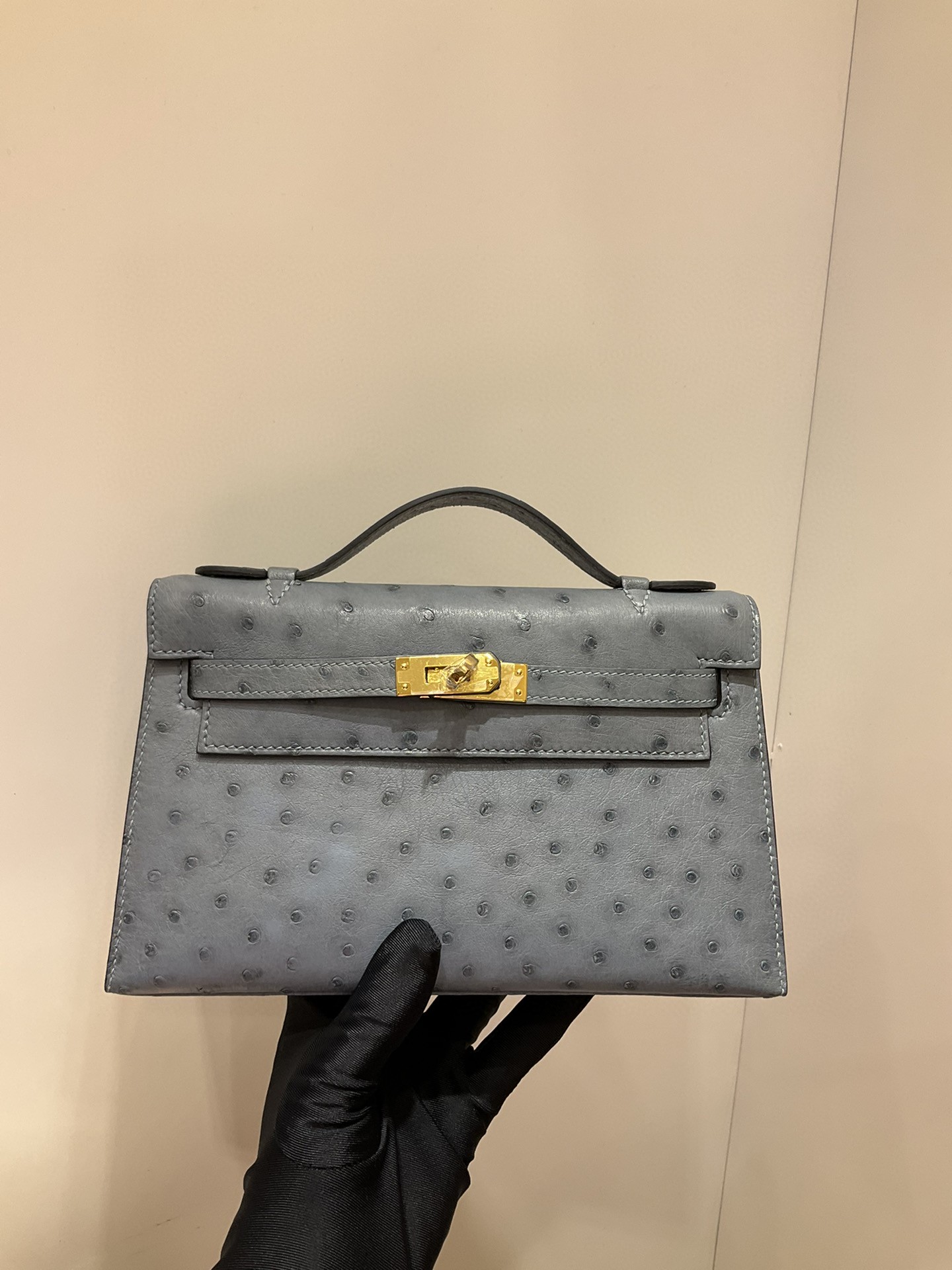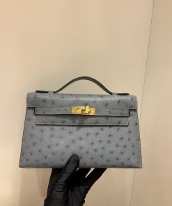 エルメス ケリー mini 22CM 手作り オーストリッチ写真色/金具ゴールド 2023AMkelly-0025