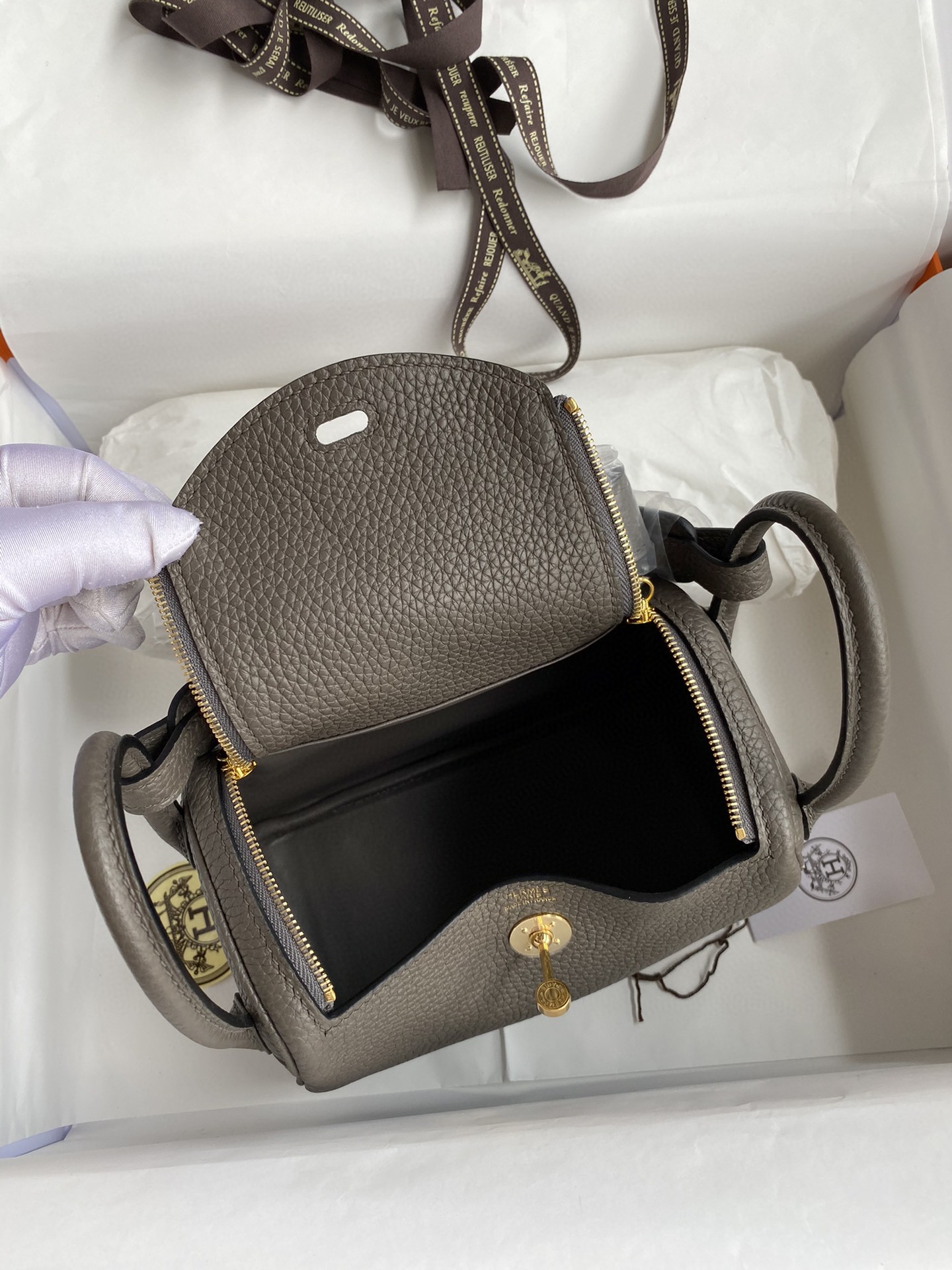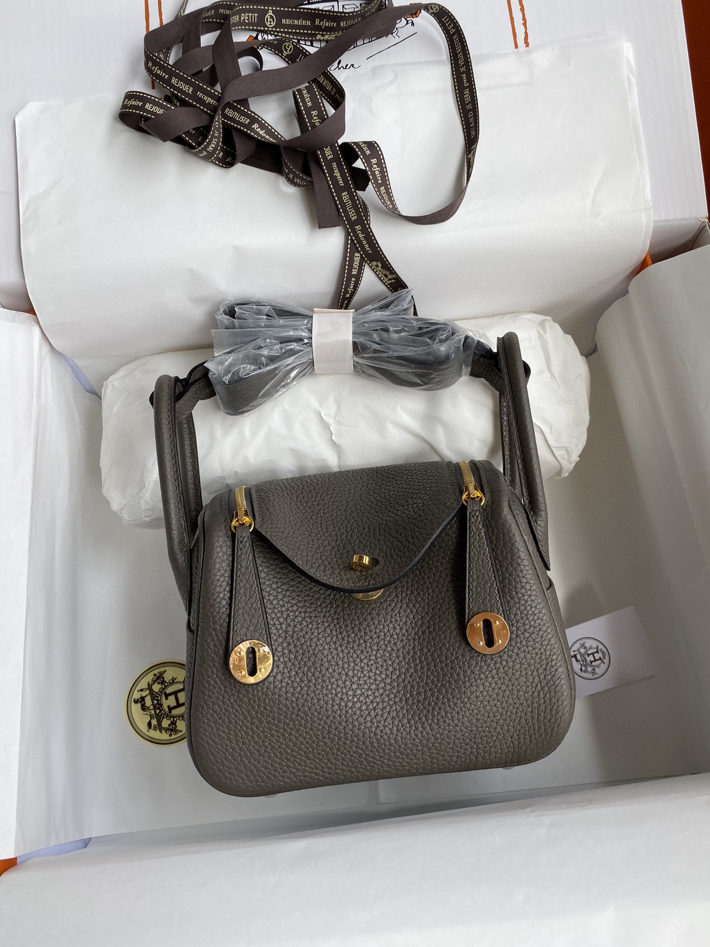 エルメス リンディ Mini Lindy 19 半分手作り 写真色/金具ゴールド 2023AMLINDY-0165