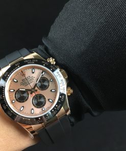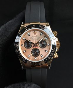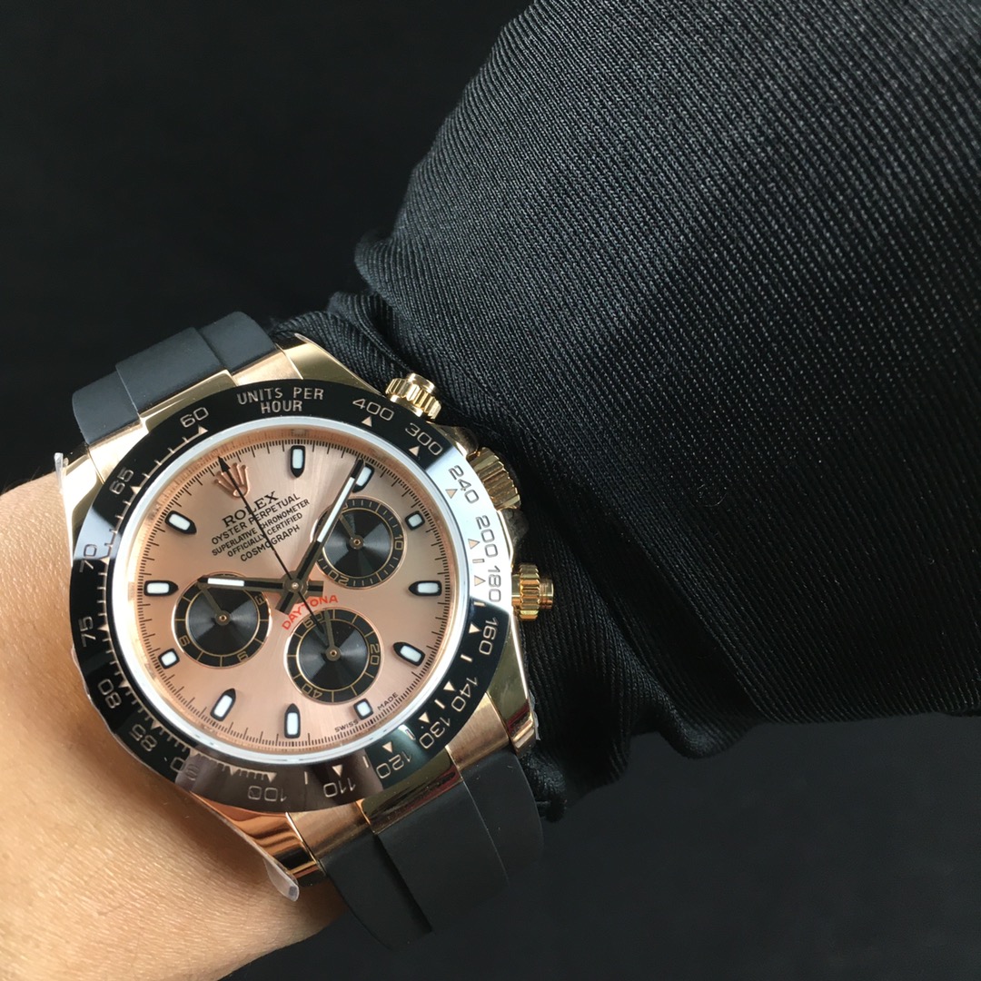 ダイアルはミラーダイアル仕上げインダイアルは溝あり抜群です使用ハンドはインダイアル&クロノ針共に116523専用です装着ブレスはデイトナ専用ショートクラスプタイプ/マイナスネジ/センターピース鏡面FFは一体最新現行タイプを採用しておりますサファイアクリスタル肉眼で判断にくいNEW王冠小極薄透かし(レーザーエッチング) クロノ完全稼動モデルですインダイアルは3時位置30分積算計、6時位置(スモセコ)永久秒針、9時位置12時間積算計でオリジナルと同様の動きで御座います。