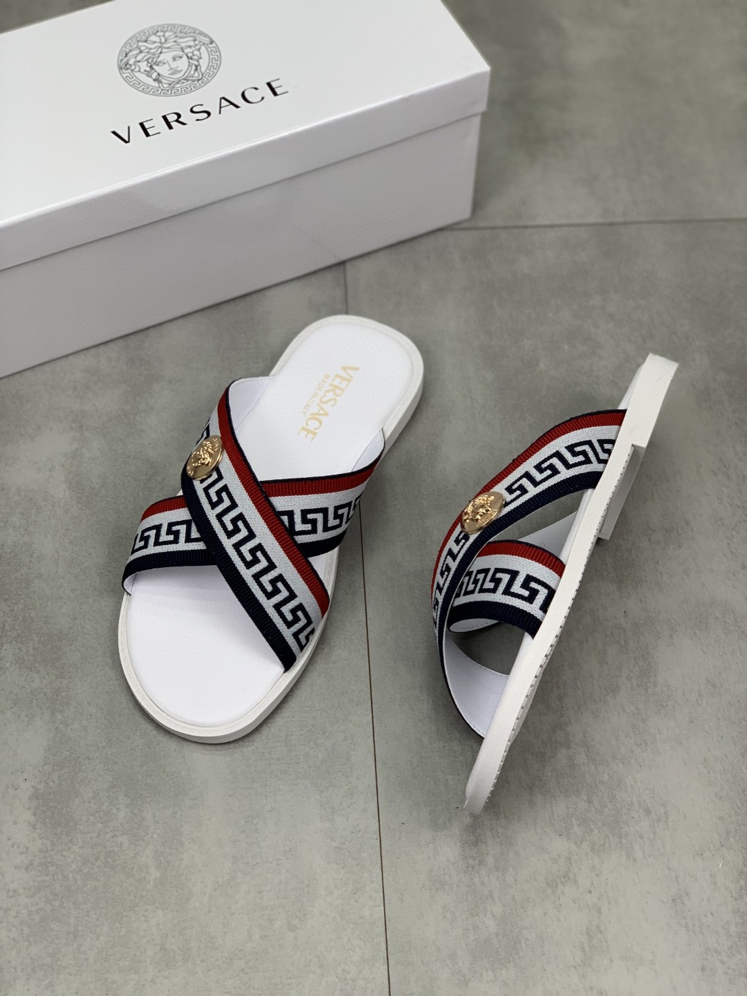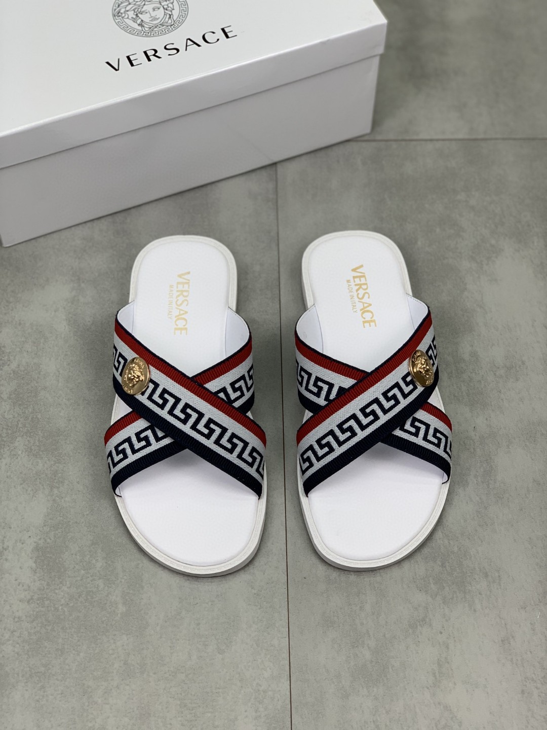 夏新作 ヴェルサーチ メンズ ミュール ビーチサンダル 2205HYJ140-VET08643