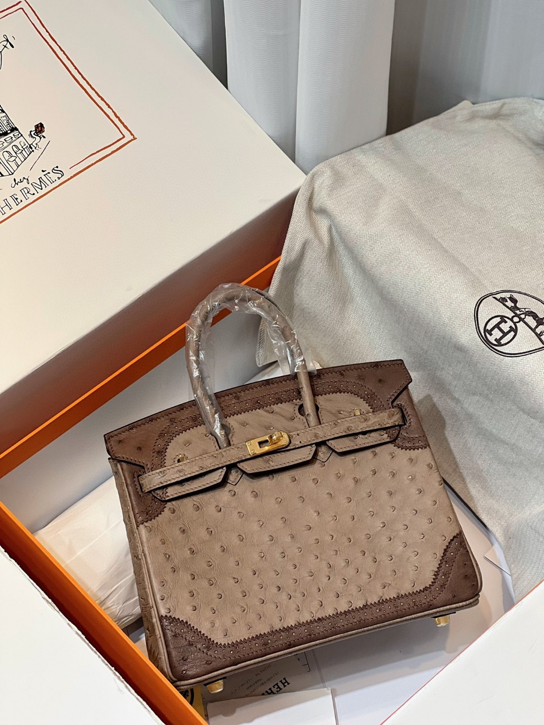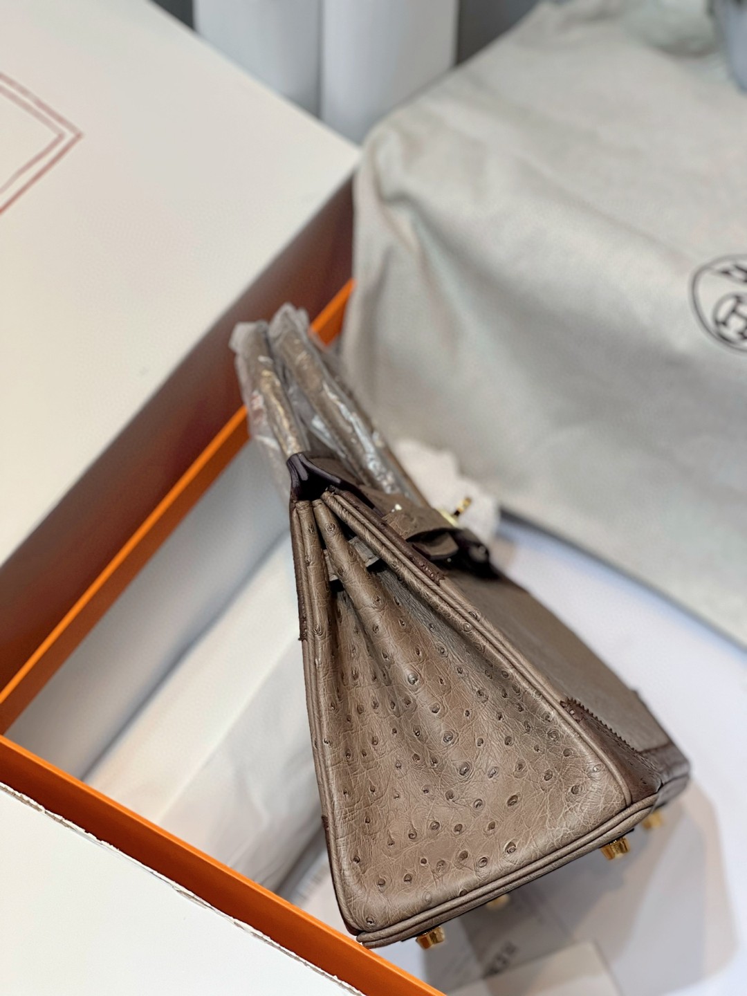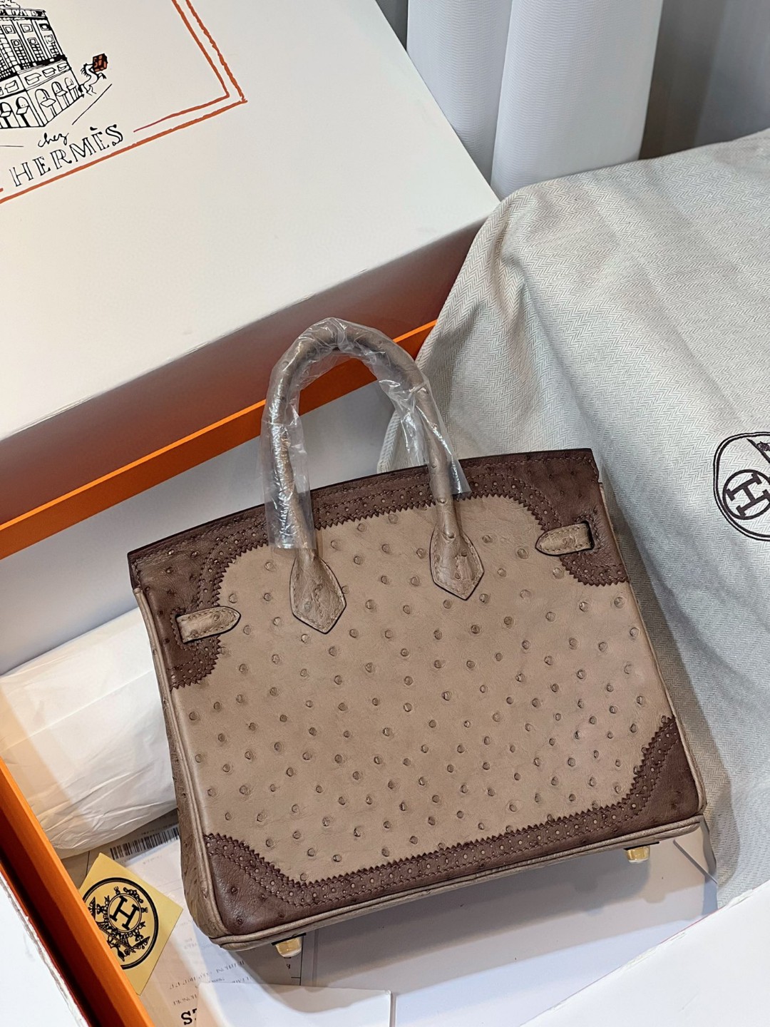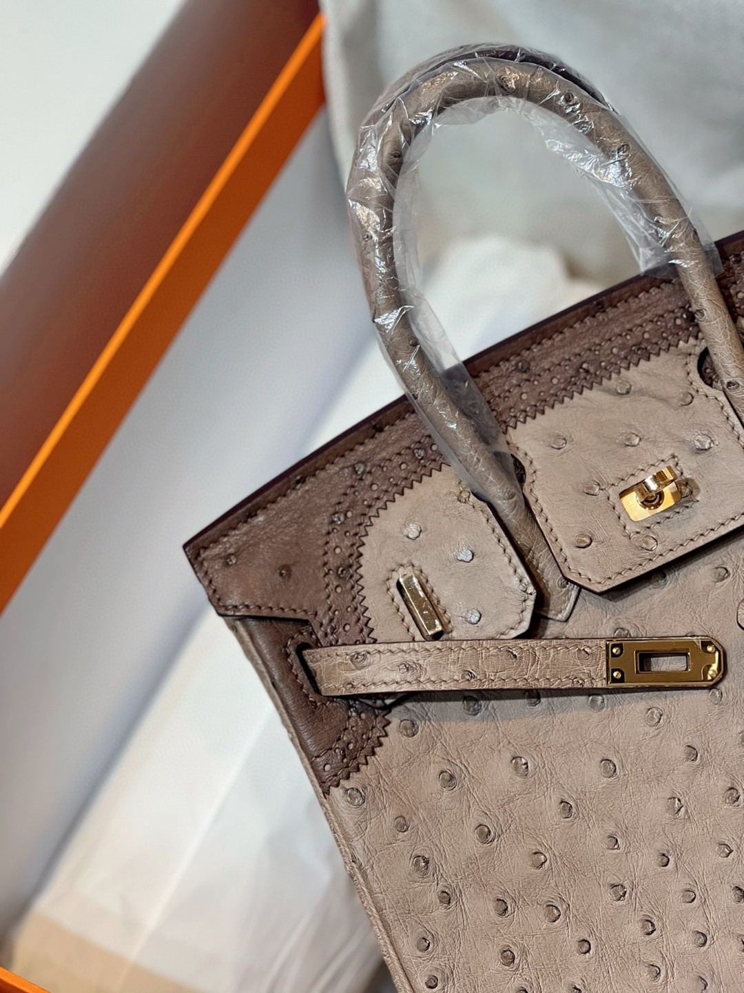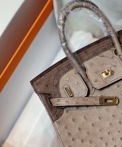 TOP エルメス オーストリッチ バーキン25CM 写真色/金具ゴールド 2023TDbrikin-0237