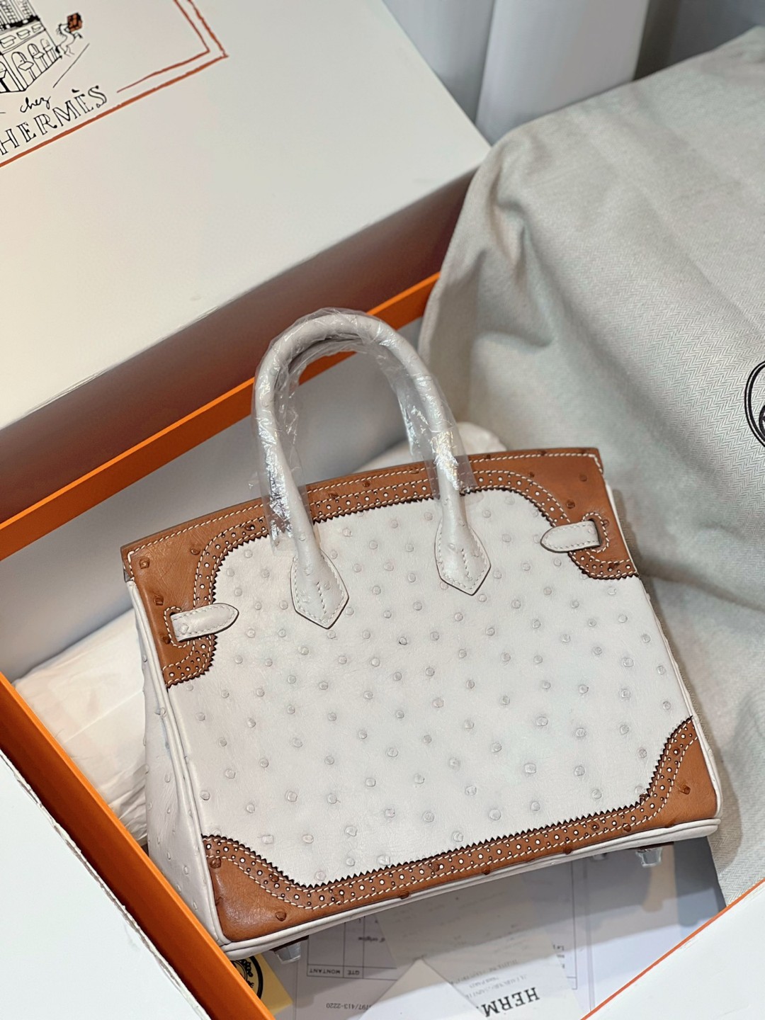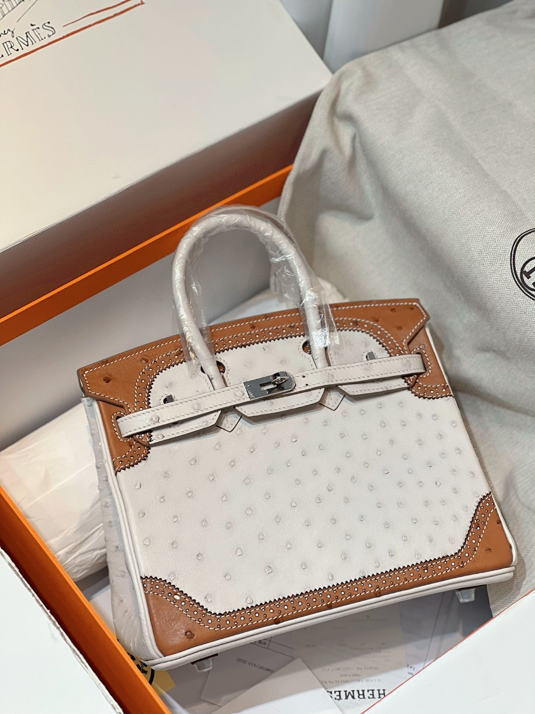 TOP エルメス オーストリッチ バーキン25CM 写真色/金具シルバー 2023TDbrikin-0238